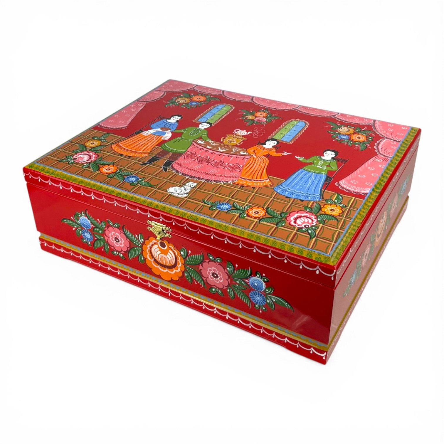 Мы с радостью создадим шкатулку по вашему заказу: с индивидуальным сюжетом, деталями, символами и цветовой гаммой. А если вам близок сюжет из карточки товара, мы можем повторить его в новой интерпретации. Каждое изделие - это всегда живая, неповторимая ручная работа.