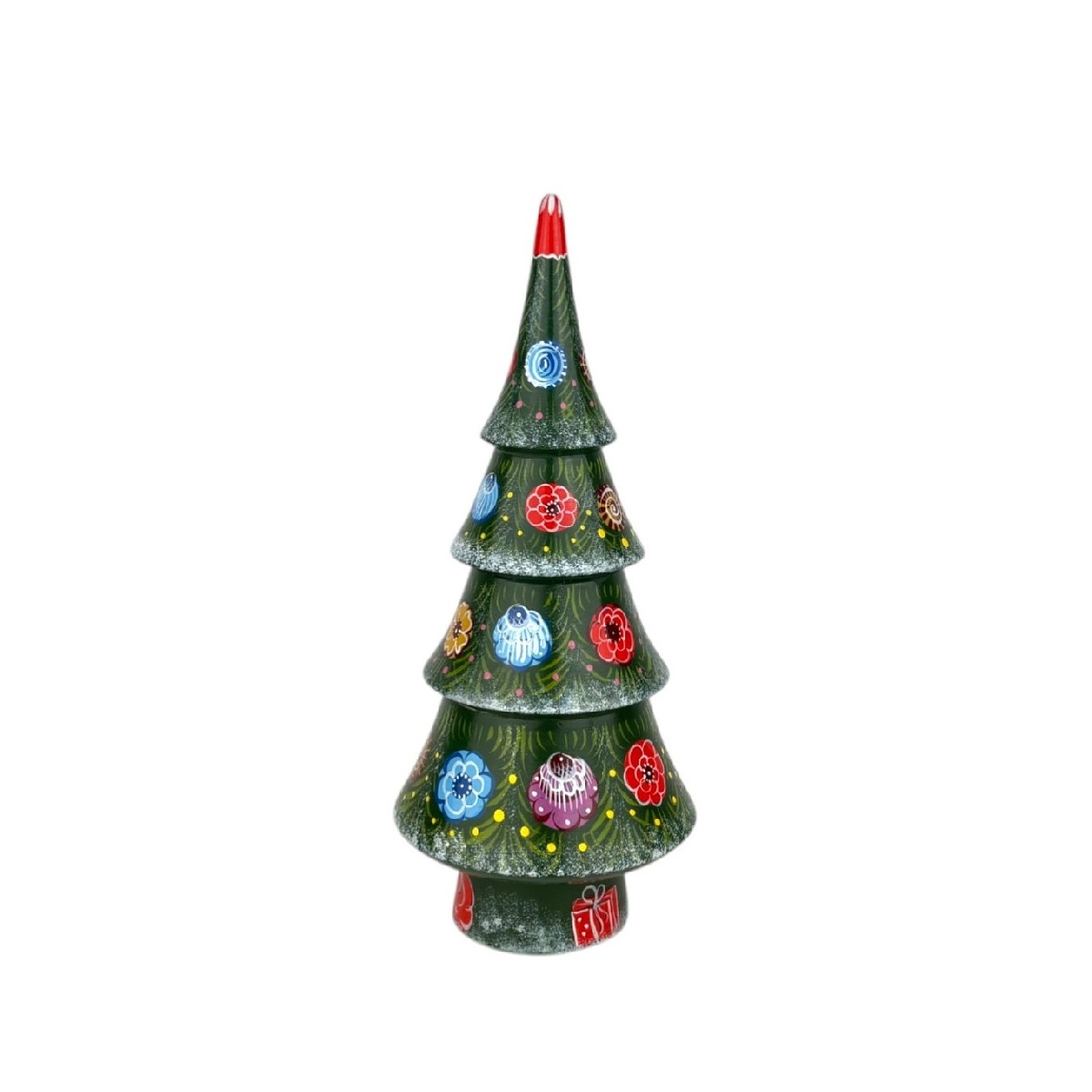 Яркая и нарядная, эта ёлка станет отличным подарком к зимним праздникам. Она будет радовать каждый год, напоминая о традициях и украшая интерьер яркими красками Городецкой росписи.