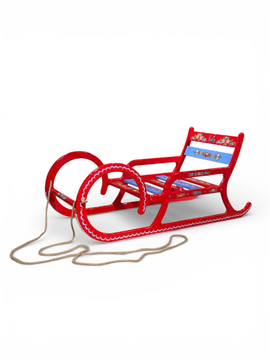 Санки в русской культуре - символ зимних забав, катания с гор, детского смеха и семейного веселья. Городецкая роспись добавляет цветы и пав - процветание, красоту и гармонию даже в холодное время года. Это одновременно декоративный сувенир и настоящие санки для катания.