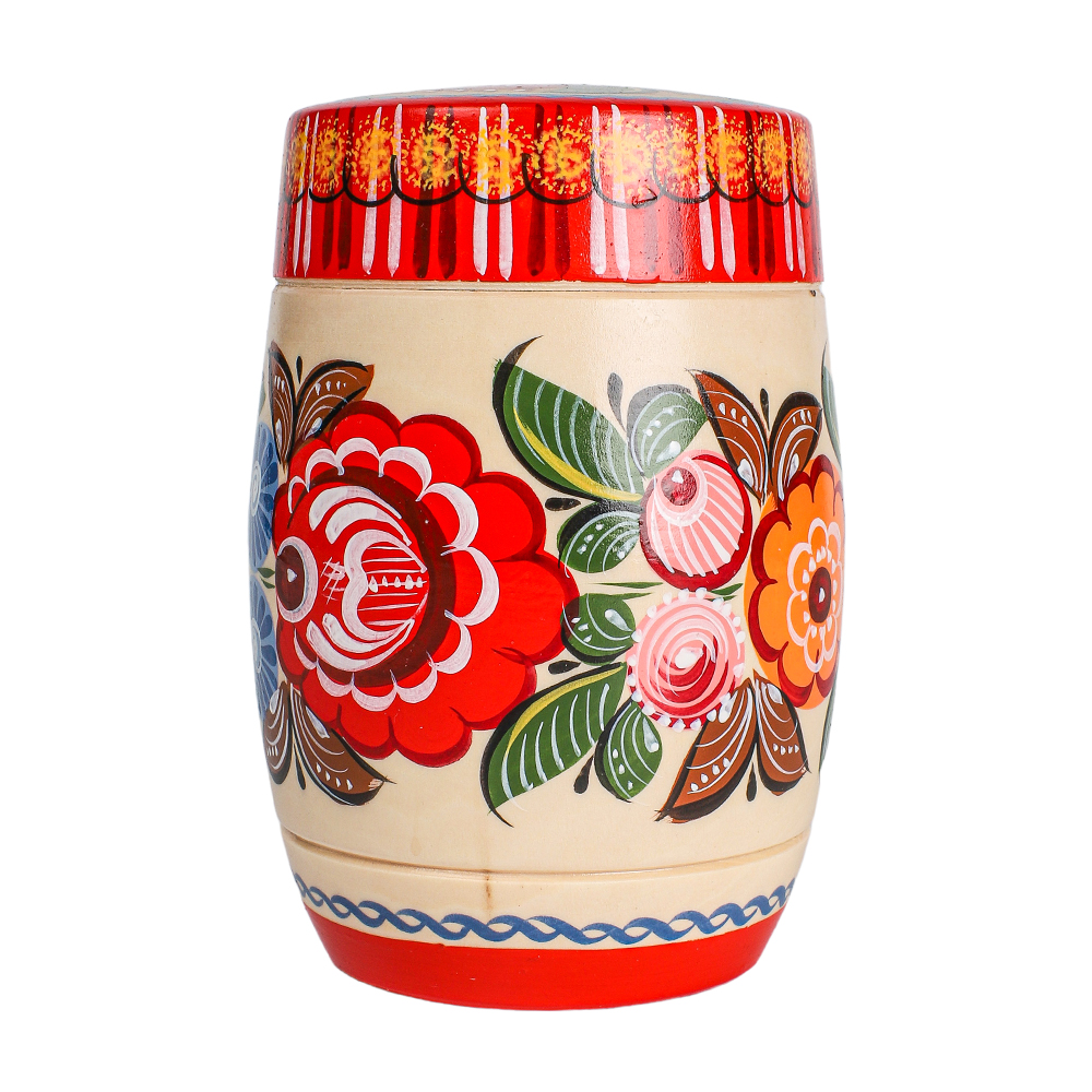 Такой бочонок станет прекрасным подарком ценителям народного искусства, хозяйкам и всем, кто любит окружать себя красивыми и душевными вещами.