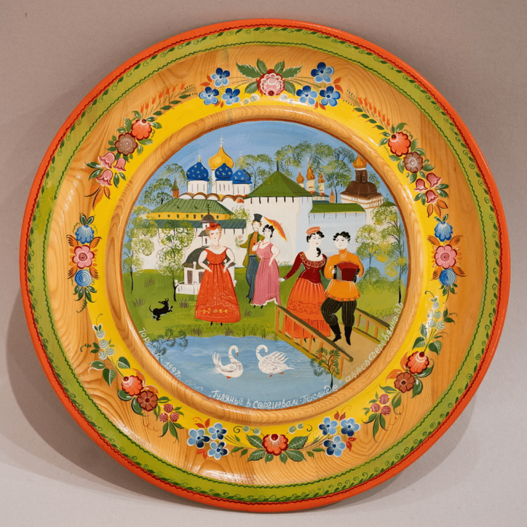 Искусство городецкой росписи последних десятилетий ХХ века представлено работами всех ведущих авторов. В это время промысел развивался в рамках предприятия «Городецкая роспись», с которым у музея установились тесные связи, в результате чего музей значительно пополнил своё собрание произведениями городецких промыслов. Городецкие мастера неоднократно приезжали в наш музей для знакомства с коллекциями. Интересным результатом сотрудничества стала серия работ «Сергиев Посад. Троице-Сергиева лавра».