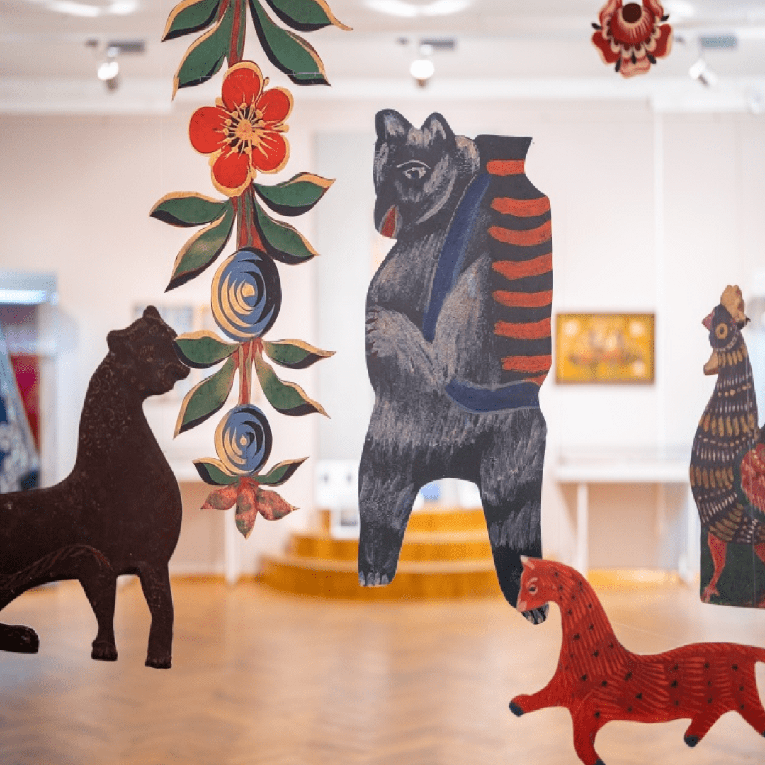 Значимое место в экспозиции отведено одному из самых ярких и своеобразных промыслов края – городецкой росписи по дереву. Эта музейная коллекция насчитывает около 1600 предметов и относится к числу наиболее крупных, что дает возможность познакомить посетителей выставки с основными периодами развития промысла, художественно-стилевыми особенностями росписи, разнообразием индивидуальных творческих манер мастеров.